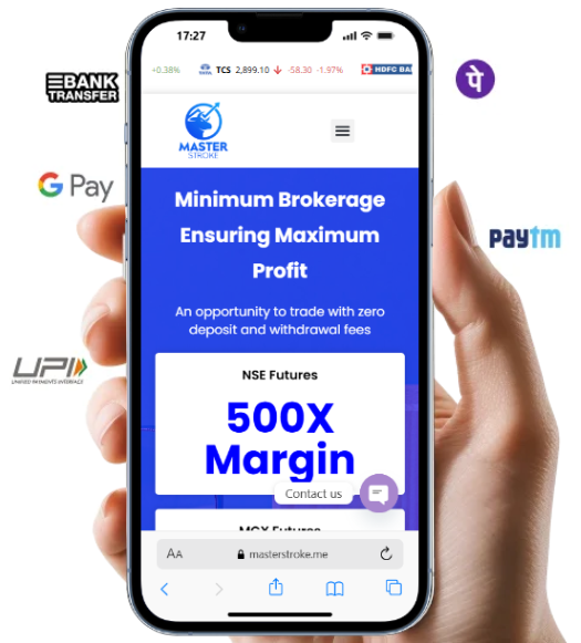 To open an account on Master Stroke, you only need an initial investment of ₹500. Deposit your funds and start your trading.